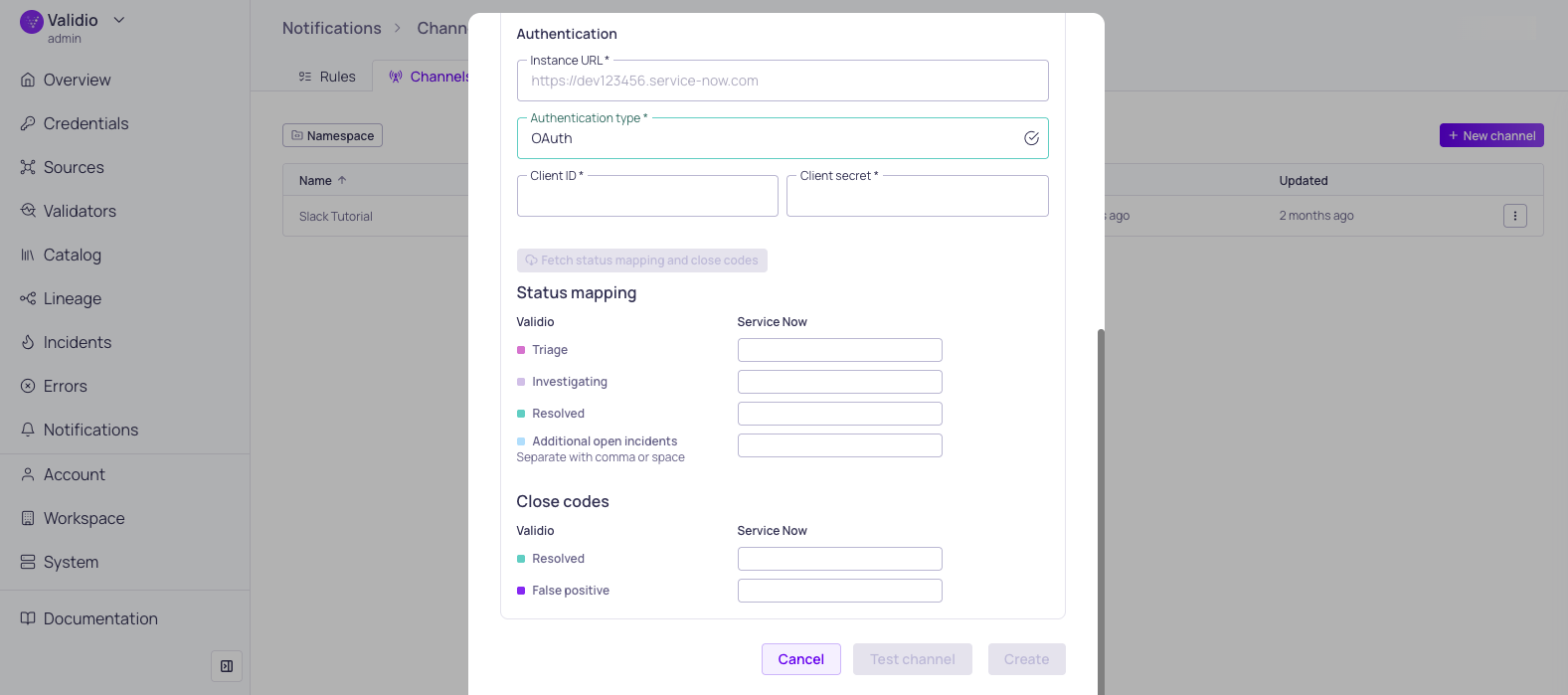 - Automatic incident creation: Validio incidents automatically create corresponding ServiceNow incidents, grouped by source