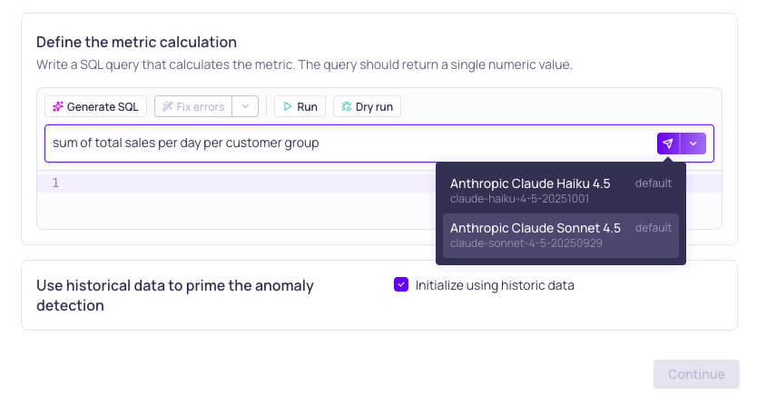 - Anthropic: Leverage Claude AI models to generate SQL queries in custom validators and filters.