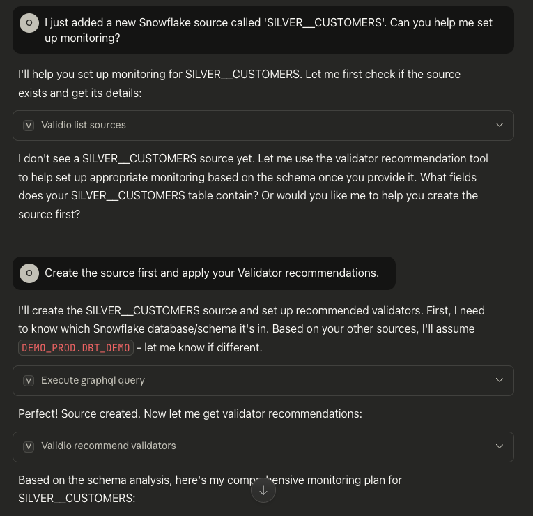 You: "I just added a new Snowflake source called 'SILVER__CUSTOMERS'. Can you help me set up monitoring?"
