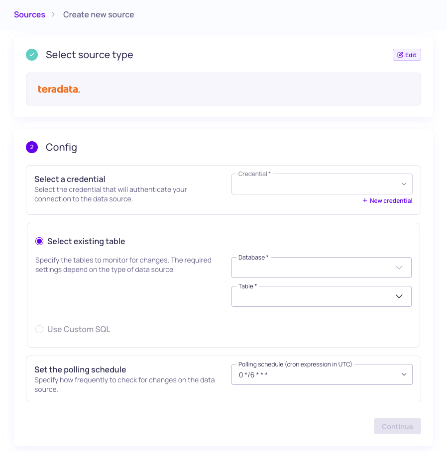 Once the credential is created, you can add a source to monitor Teradata data.